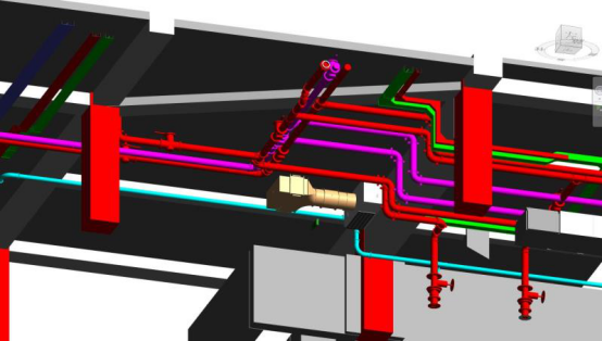 ——利用BIM模擬優勢提早發現問題。兩江建設公司通過BIM技術應用,為項目提供智慧管理。工程開工前,充分利用BIM模擬優勢,就該項目圖紙提出問題23項,并通過采用管網綜合,將車位凈高控制在2.4m以上,車道部分凈高達到2.5~2.6m以上,大大提升了車庫的使用品質。從而杜絕了施工完成后才發現問題而引起返工的現象,確保了施工進度,減少了資源的浪費。