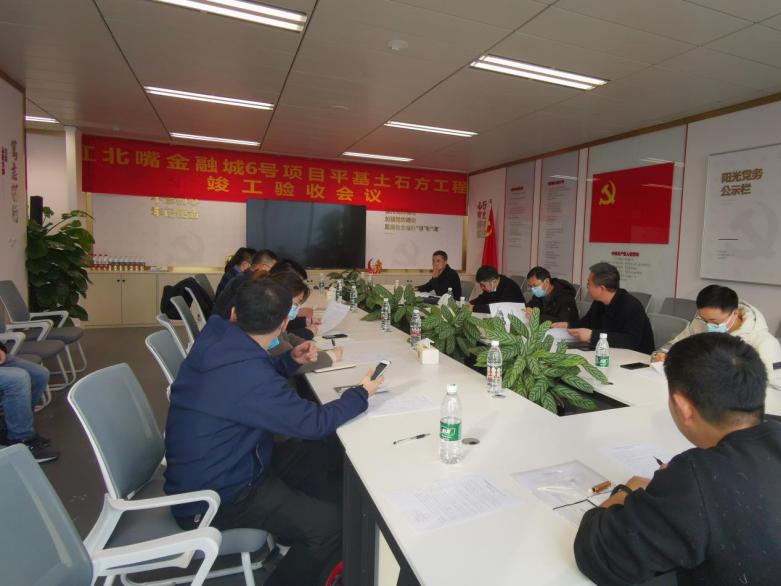 來源:工程管理部 羅昂、總工辦 林彬 發布日期:2022/1/20 【打印此文】1月19日上午,由兩江建設公司承建的江北嘴金融城6號項目平基土石方工程順利通過竣工驗收。本次竣工驗收由建設單位重慶市江北嘴置業有限公司組織,重慶市設計院、重慶市勘測院、重慶華興工程咨詢有限公司、重慶兩江新區建設有限公司和兩江新區質量監督站等參建單位相關人員參會。