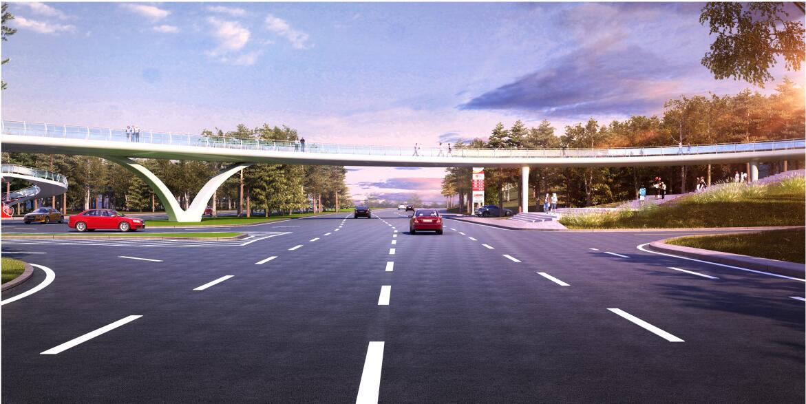 該人行天橋南側是黃山大道及周邊建筑,緊鄰兩江廣場,北側為照母山公園,目前周邊路網已形成,周邊建設用地已開發完善,隨著照母山公園的打造及兩江幸福廣場的投入使用,迫切需要完善連接照母山公園和兩江幸福廣場的行人過街通道的建設。為確保該工程順利完成,公司相關部門,按照公司對項目部的管理流程規定提前完成了該工程施工前的項目管理控制和技術相關的交底工作。