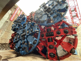 據(jù)了解,“掘進(jìn)號”頂管機首次采用“六刀盤+六滾筒”復(fù)合破巖技術(shù),總裝機重量約1000噸、主頂推力10300噸、中繼間推力7000噸,斷面開挖寬10.42米、高7.57米,斷面開挖覆蓋率達(dá)100%,具備強大的硬巖掘進(jìn)能力,能在復(fù)雜地質(zhì)條件下實現(xiàn)高效、穩(wěn)定的隧道施工。與傳統(tǒng)的圓形盾構(gòu)機相比,“掘進(jìn)號”頂管機因大斷面矩形、可裝配這兩大創(chuàng)新亮點,為地下隧道和設(shè)施提供更合理的布局空間,使其空間利用率提高20%、輔助人工成本節(jié)約60%,施工效率提升、作業(yè)成本降低的同時,還能適應(yīng)淺覆土、不斷交通,減少城市改造需交通轉(zhuǎn)換帶來的擁堵以及對原有地面、植被的大量破壞。